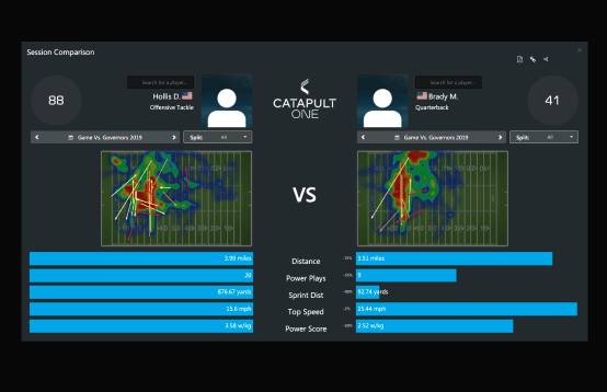 Catapult One tracks 10 core metrics including sprint distance, top speed, power and player load to inform your performance conversations with data and motivate your players to deliver the results.